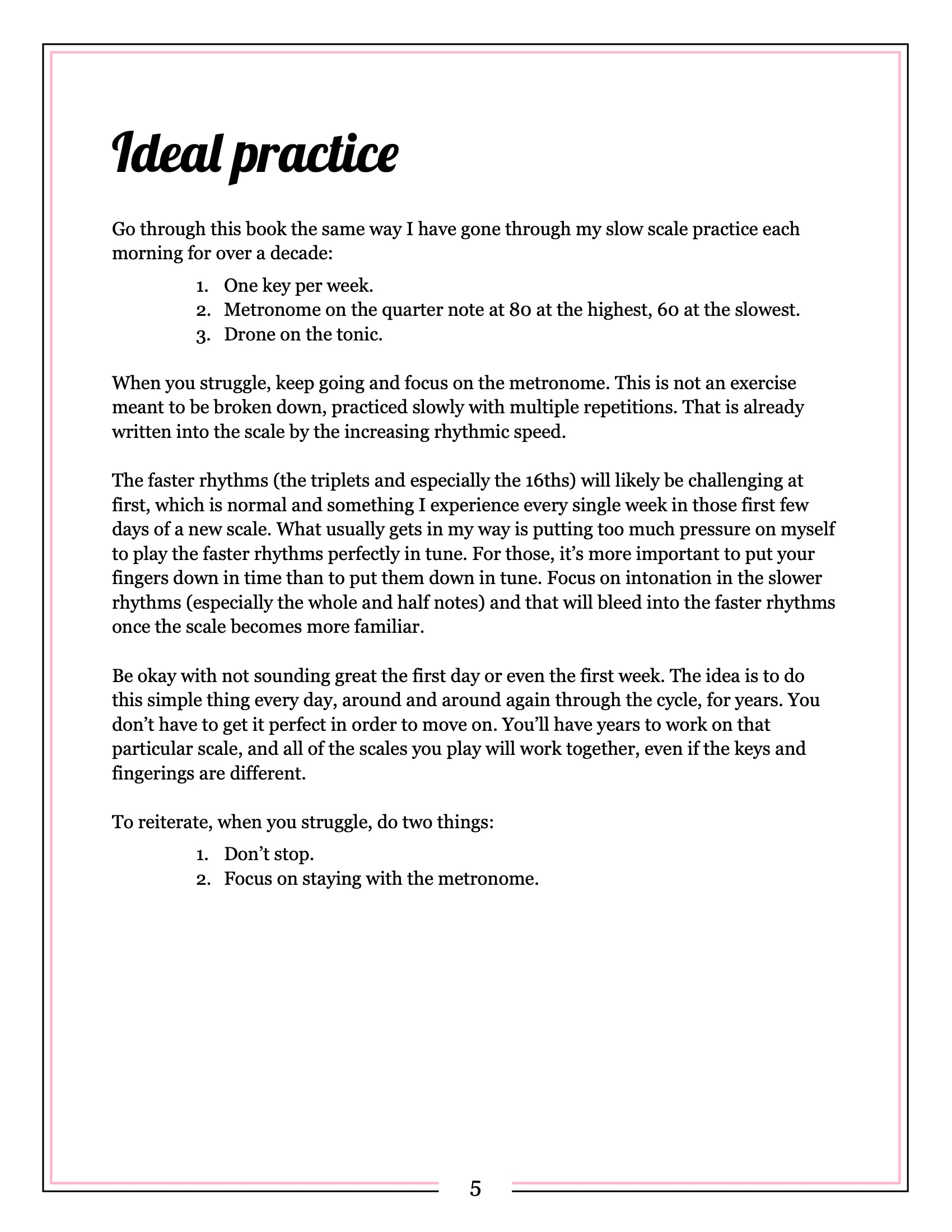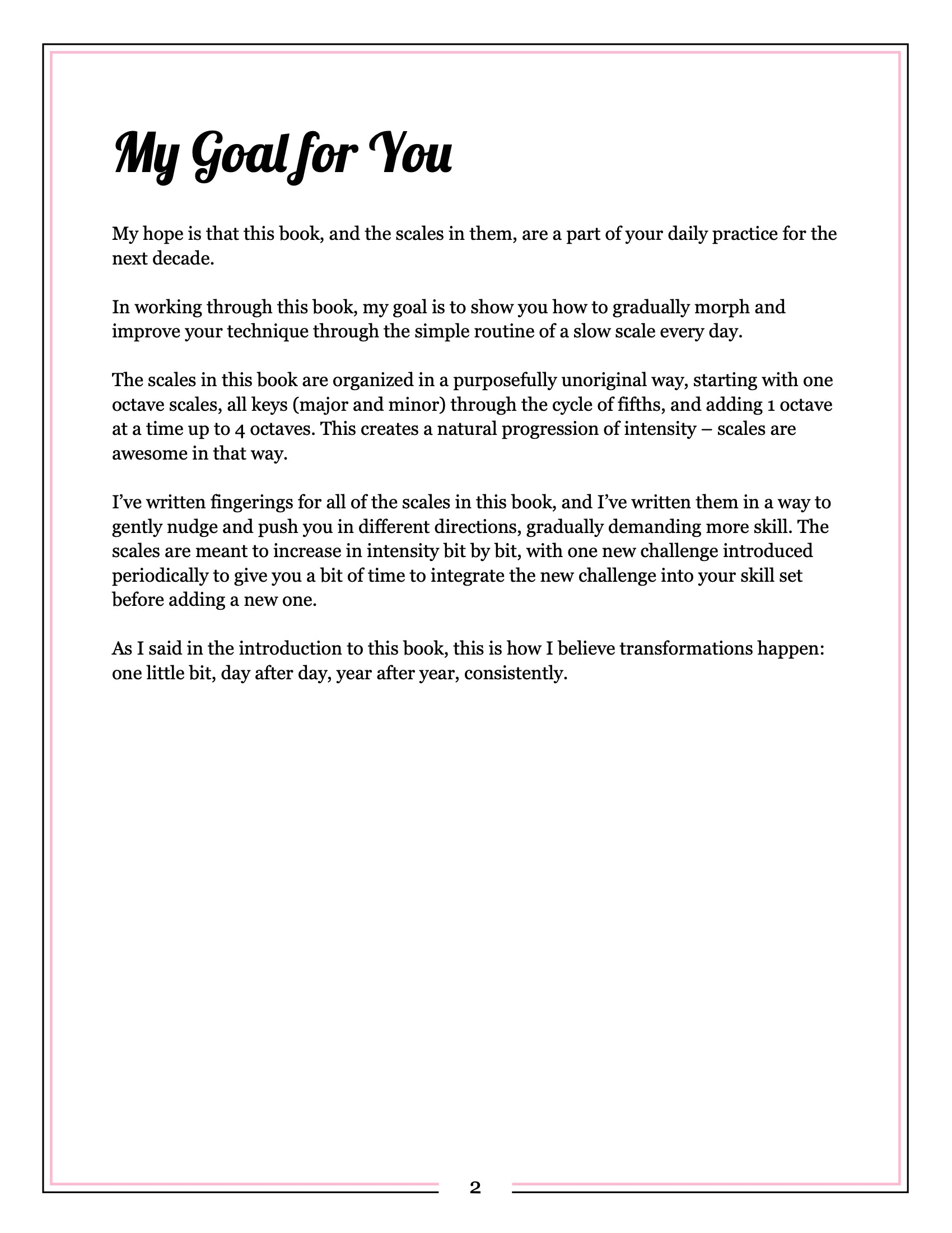 My goal in writing this book was to provide you with a framework for structuring your scales practice in the short and long term and teach you how to push yourself to grow in a way that leads to lasting change, not just fleeting success.